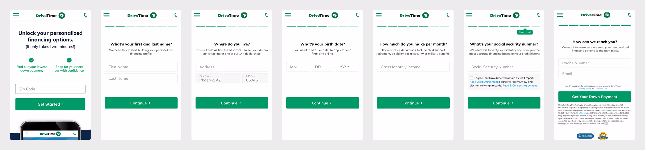 Converted DriveTime's vehicle financing application into a step-by-step guided form and increased submissions by 6%.